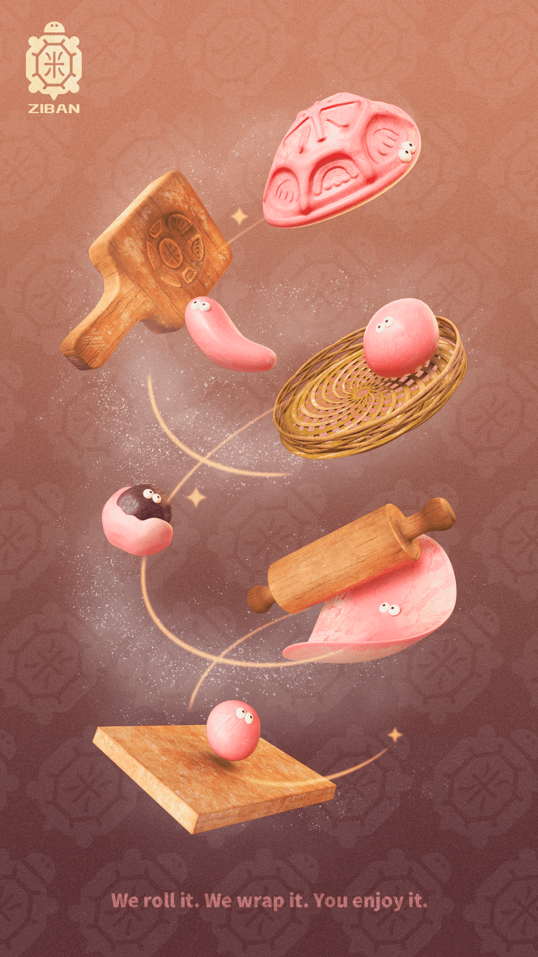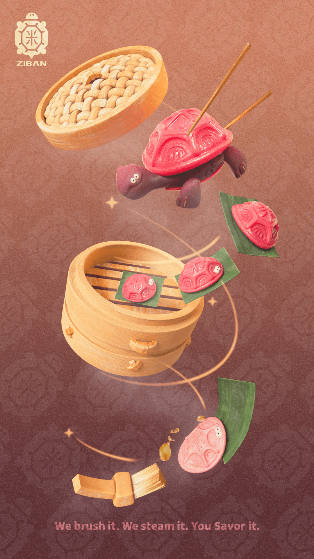 ZIBAN is a branding project centered on Ang Ku Kueh, a traditional Taiwanese Hakka dessert shaped like a turtle shell, symbolizing good luck and celebration.